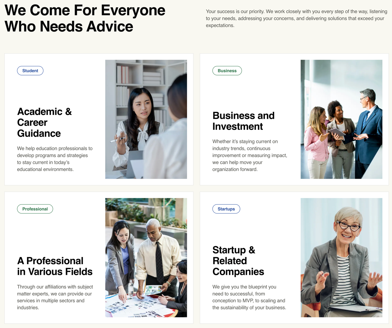 A dynamic consulting company is committed to delivering top-tier services across a spectrum of crucial domains. From Education Programs, Professional Development to Business Development Services.